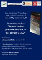 Venerdì 15 gennaio alle ore 21 presso il centro Sociale Primo Levi si terrà un incontro con Alessandro Chiolo, autore del libro NOME IN CODICE: QUARTO SAVONA 15 KM 100287 E OLTRE e Tina MONTINARO, moglie di Antonio Montinaro (caposcorta del giudice GIOVANNI FALCONE).
