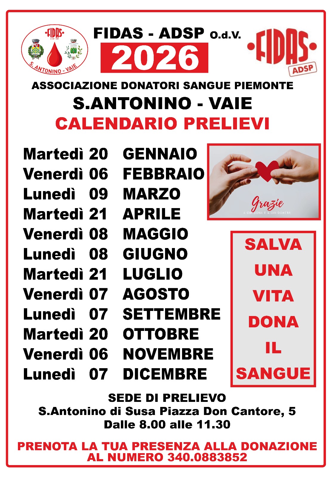 Calendario Donazioni Sangue ANNO 2026