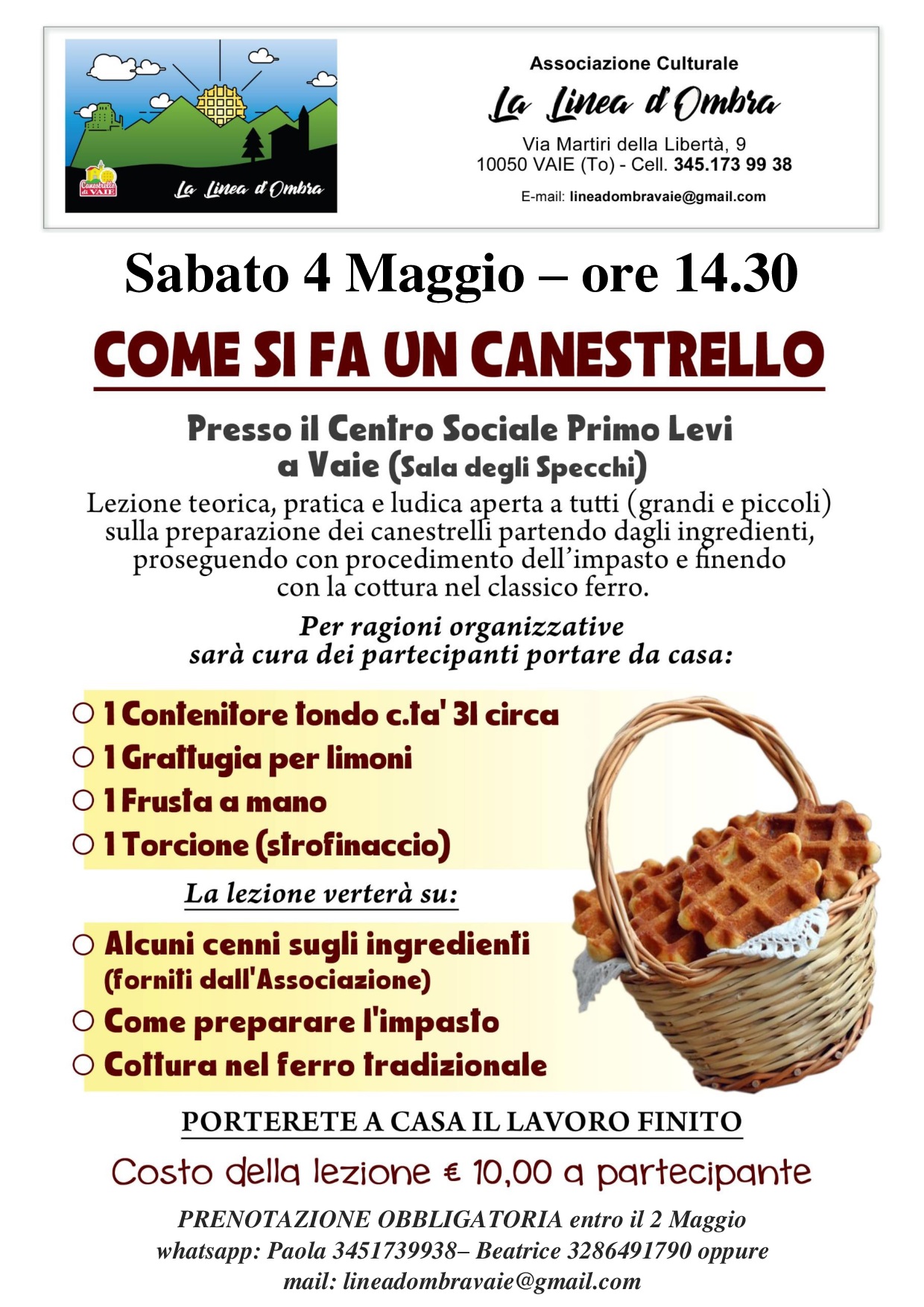Lezione teorica, pratica e ludica aperta a tutti sulla preparazione dei Canestrelli.