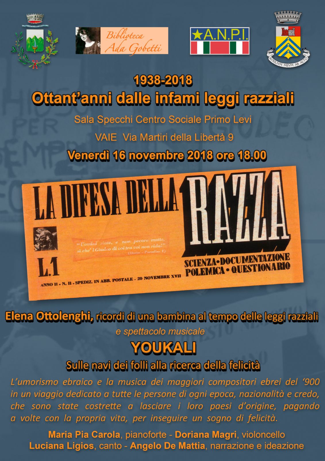 Incontro con Elena Ottolenghi , ricordo di una bambina al tempo delle leggi razziali. A seguire spettacolo musicale YOUKALI